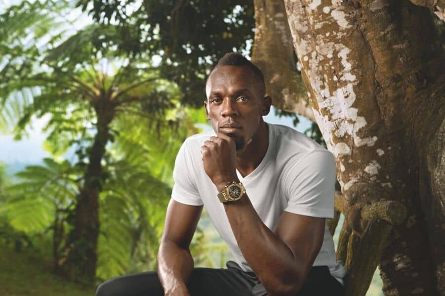 The world's fastest man, Usain Bolt, wears a Hublot timepiece — the Big Bang Unico chronograph in yellow gold. A watch befitting an athlete of his caliber, allowing him to time his sporting performances while embodying the shared values he holds in common with the Swiss watchmaker: courage, dedication, tenacity, and a competitive spirit, all underpinned by an unwavering pursuit of perfection.