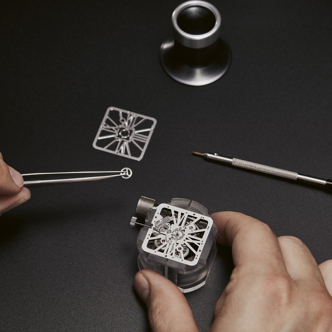 One of Cartier's major secrets lies in the design of its in-house movements, the true driving force behind its exclusive timepieces. The creation of a complicated movement — such as the famous tourbillon, a symbol of technical virtuosity — requires years of development and brings together dozens of specialists: engineers, watchmakers, designers, developers and decorators. This ballet of skills results in timepieces of extreme reliability and finesse, often individually numbered. Cartier's Santos Skeleton watches showcase this expertise by revealing the beauty of the movement through an openwork dial.