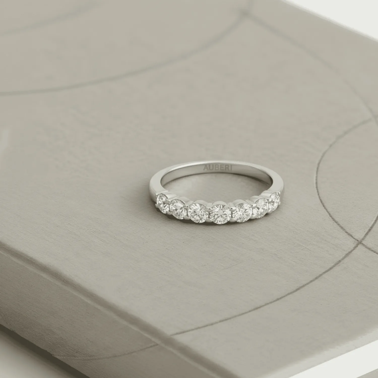 Half-eternity stud wedding band, set with 9 round brilliant diamonds 0.71ct. Grace Collection.