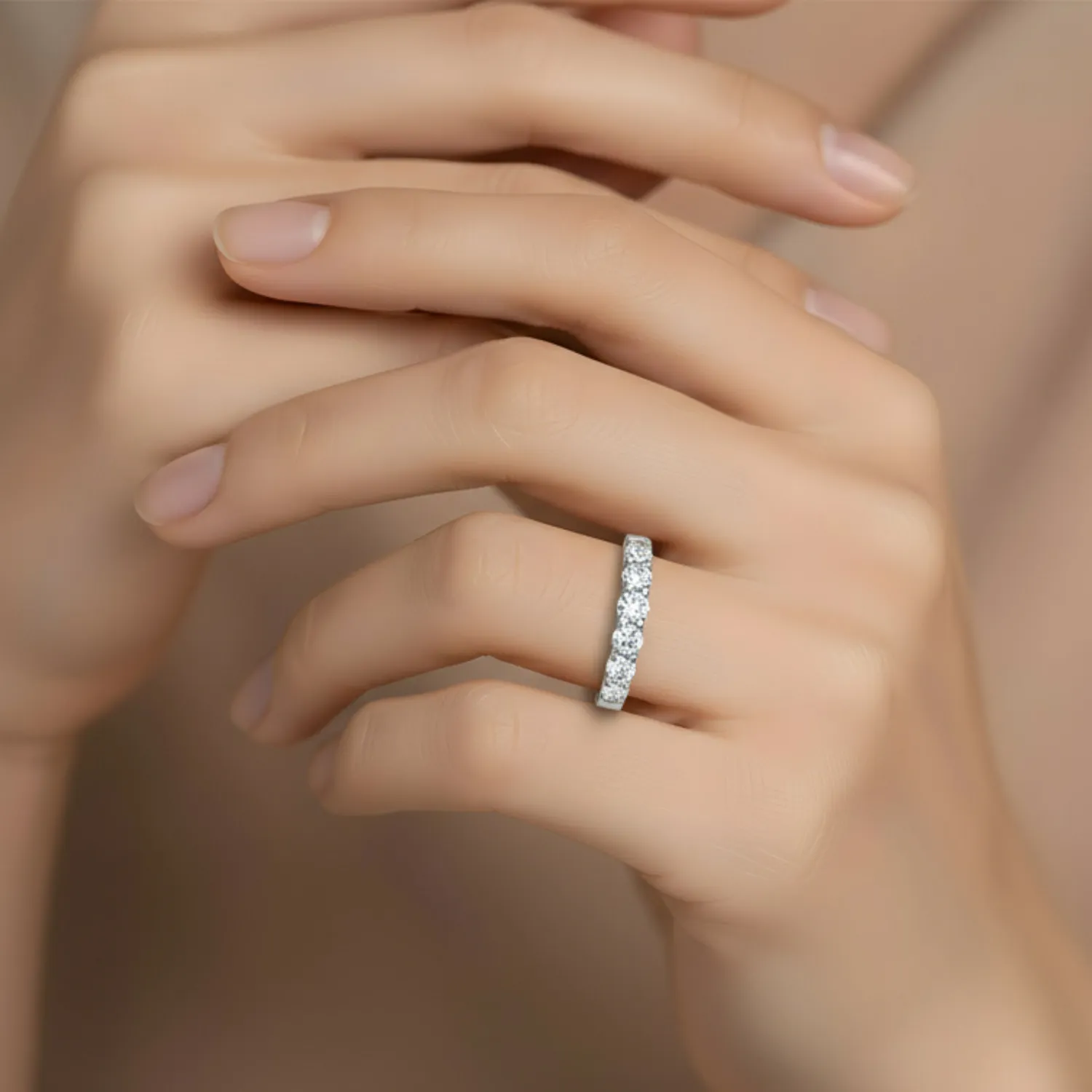 Half-eternity stud wedding band, set with 8 round brilliant diamonds 0.88ct. Grace Collection.