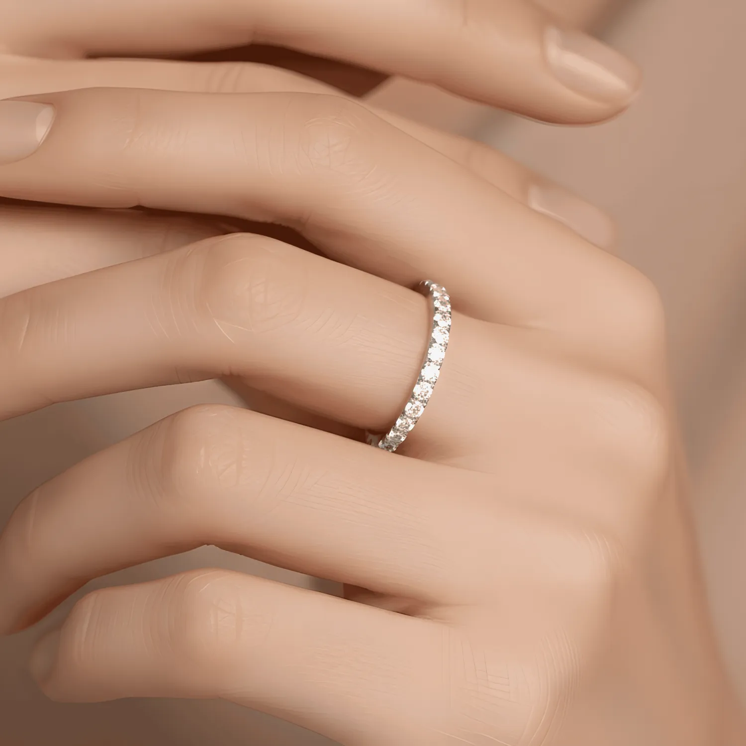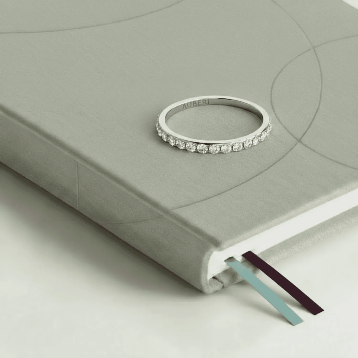 Half-Eternity Ribbon Band 1, set with 19 round brilliant diamonds 0.18ct. Grace Collection.