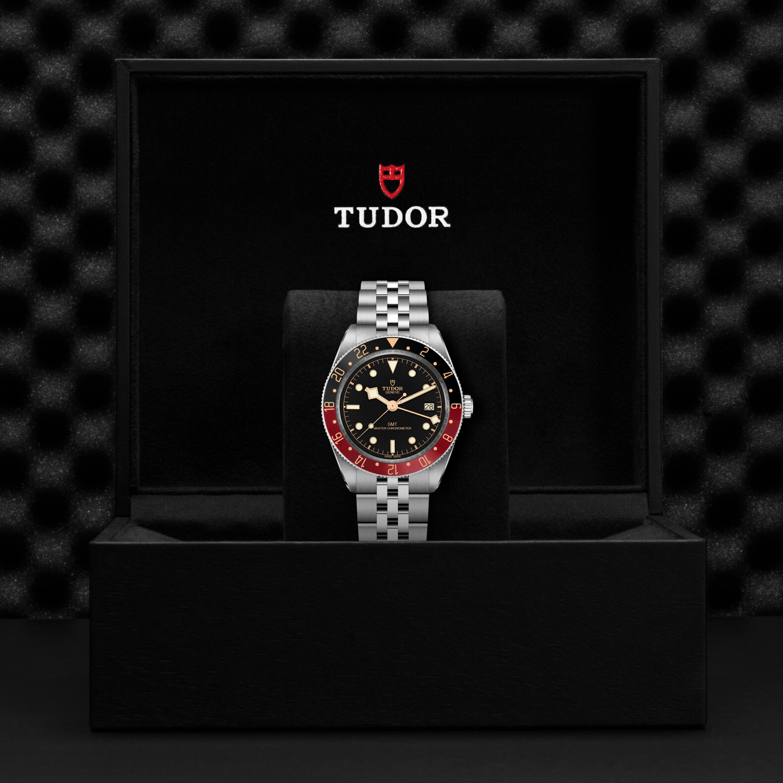 TUDOR Black Bay 58 GMT watch, 39mm steel case, Black and burgundy bezel