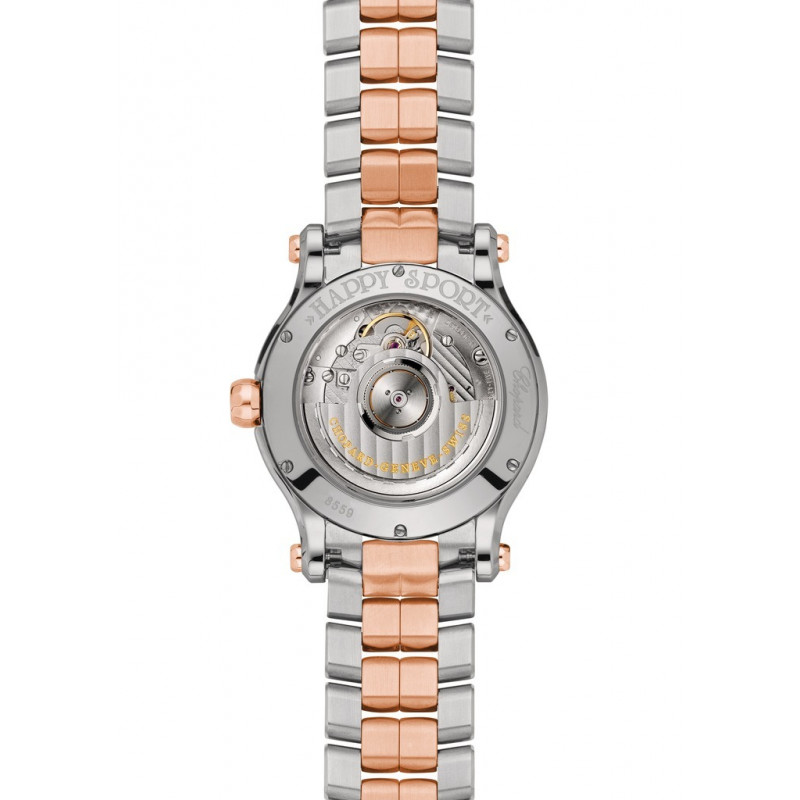 30 mm rose gold case, self-winding mechanical movement, steel bracelet