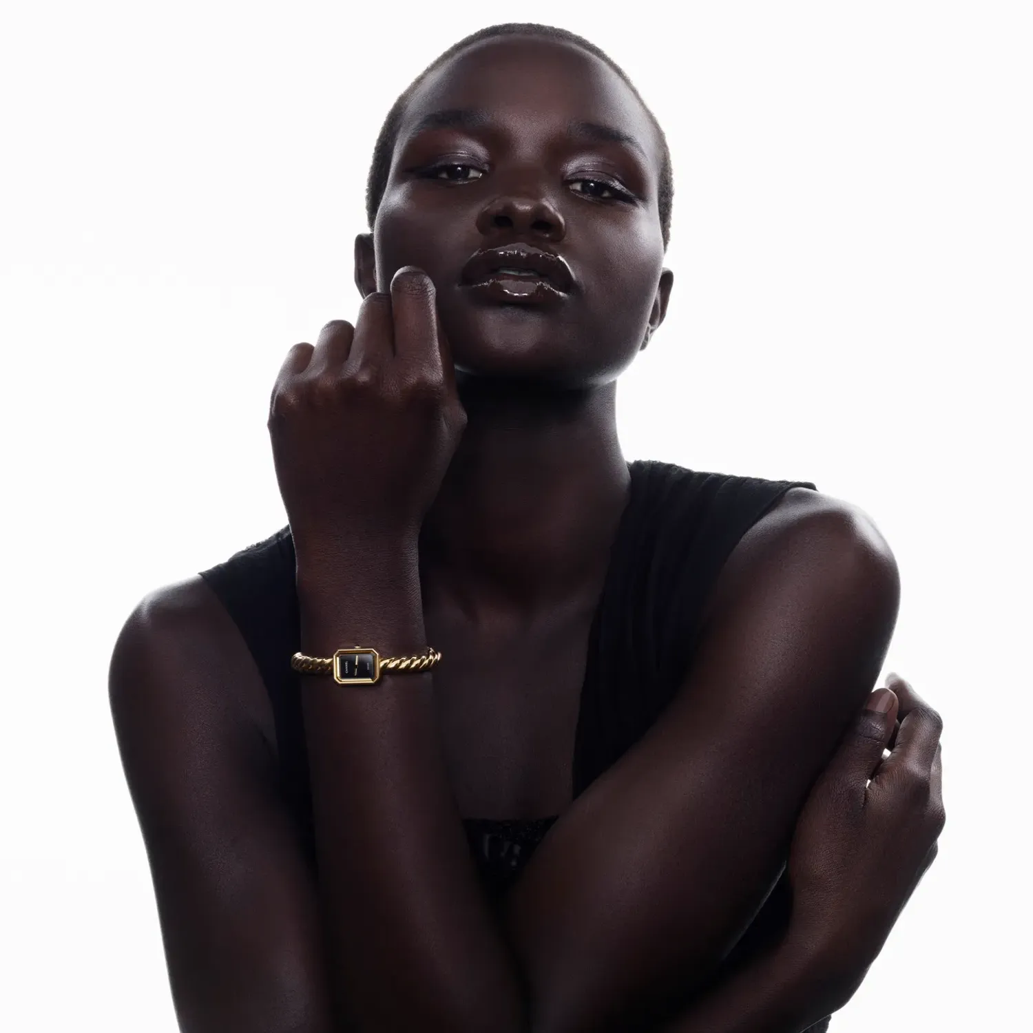 15.2 mm yellow gold case, quartz movement, yellow gold bracelet