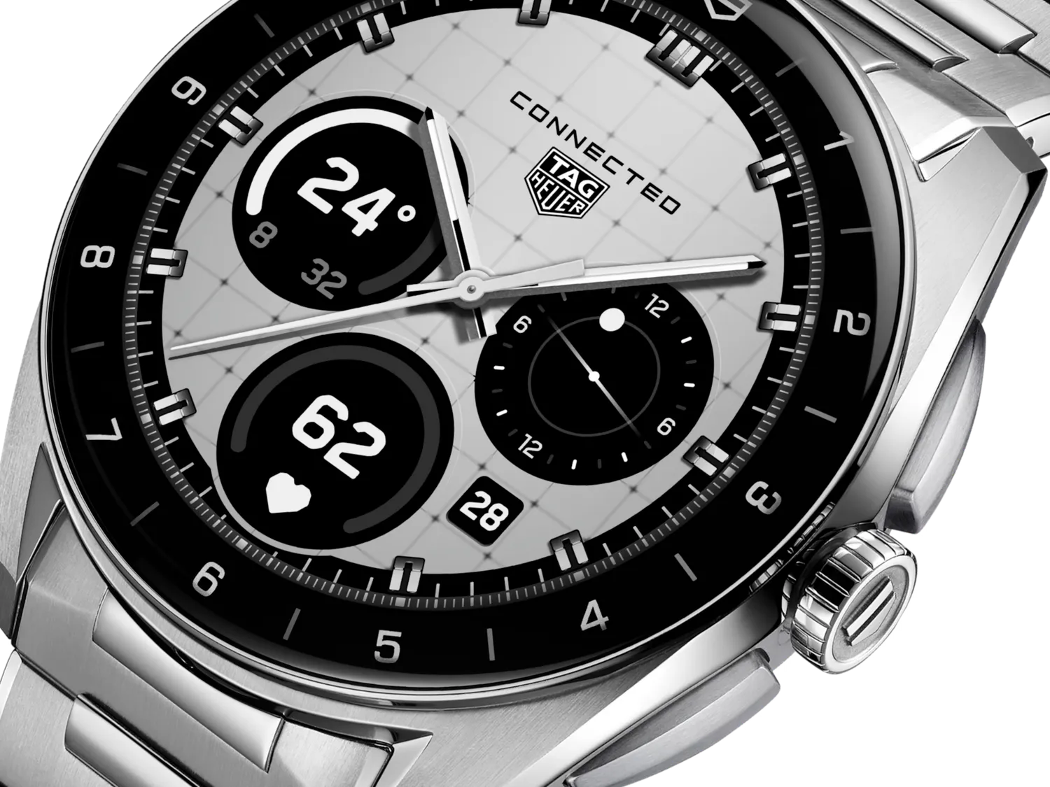 40 mm steel case, quartz movement, steel bracelet