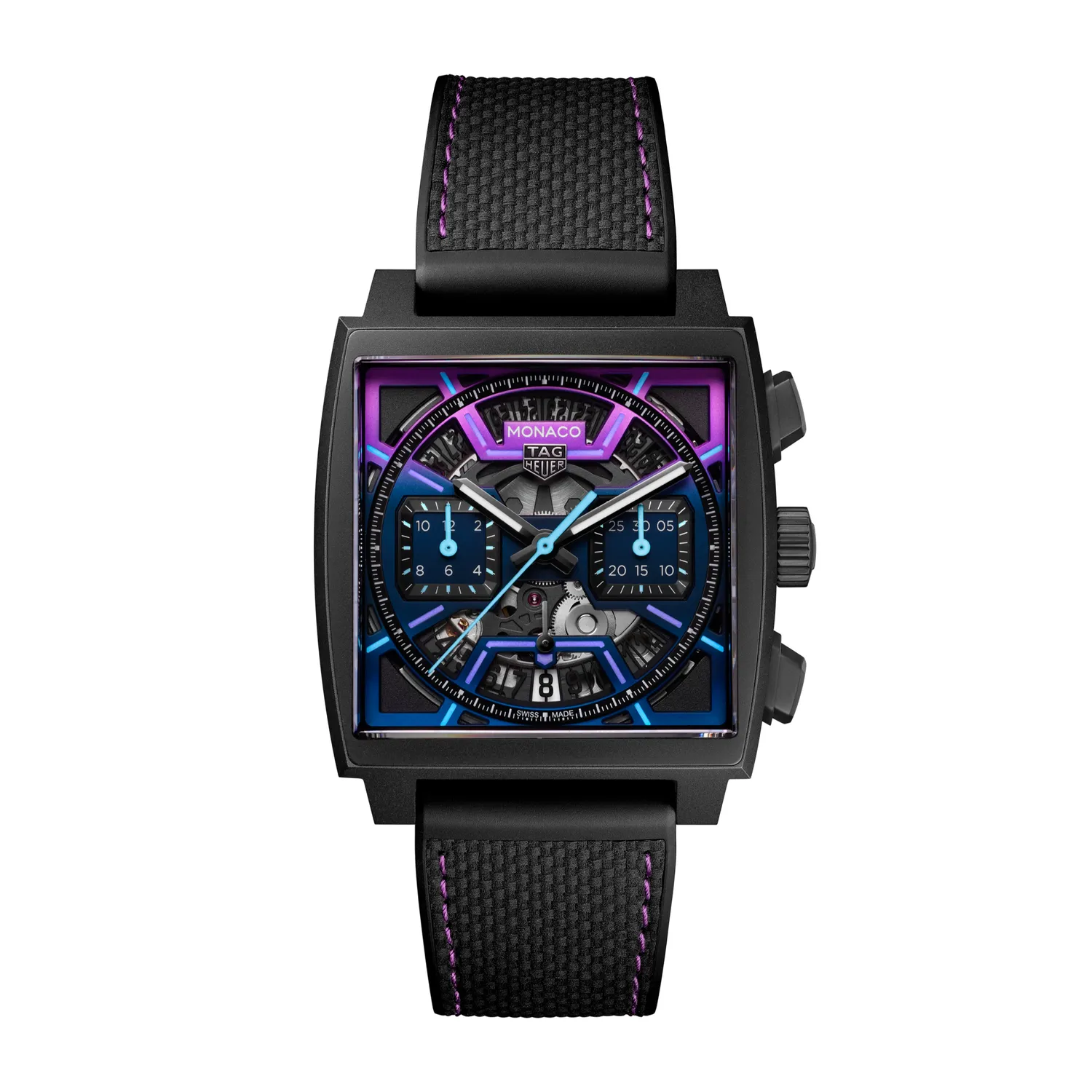 44 mm steel case, self-winding movement, rubber strap