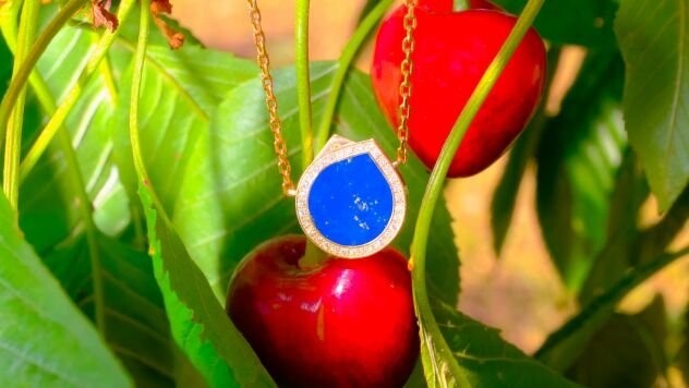 Le lapis-lazuli, bleu intense constellé de pyrite dorée, offre une profondeur céleste au bijou.