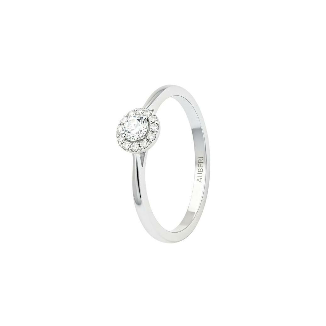 Bague Paloma en or blanc palladié, diamant de 0.40ct et 14 diamants ronds brillants de 0.08ct