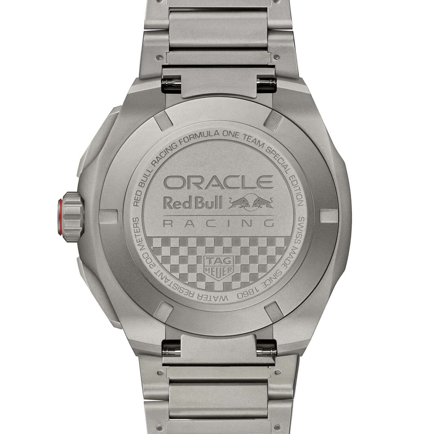 Le cadran bleu opalin présente un subtil motif de drapeau à damier, jouant sur les variations de tons pour refléter l’ADN de course d’Oracle Red Bull Racing. Trois sous-cadrans aux reflets rouge et blanc assurent la lisibilité, tandis que les aiguilles rhodiées et les index revêtus de Super-LumiNova® mettent la lisibilité au premier plan. Construit en titane de grade 2 sablé et animé par le Calibre 16 automatique, ce chronographe de 44 mm est doté d’une lunette tachymétrique fixe en carbone noir et gris et offre une étanchéité à 200 mètres. Le bracelet à trois rangs en titane de grade 2 allie robustesse et légèreté. Une boucle déployante avec des boutons-poussoirs de sécurité et un maillon d’extension garantissent un port sûr, même sous pression. Le boîtier exclusif qui héberge cette pièce d'horlogerie reflète son identité visuelle audacieuse, avec des détails qui évoquent les codes esthétiques incontournables de la Oracle Red Bull Racing. Une expérience d'ouverture unique pour cette édition spéciale co-brandée.