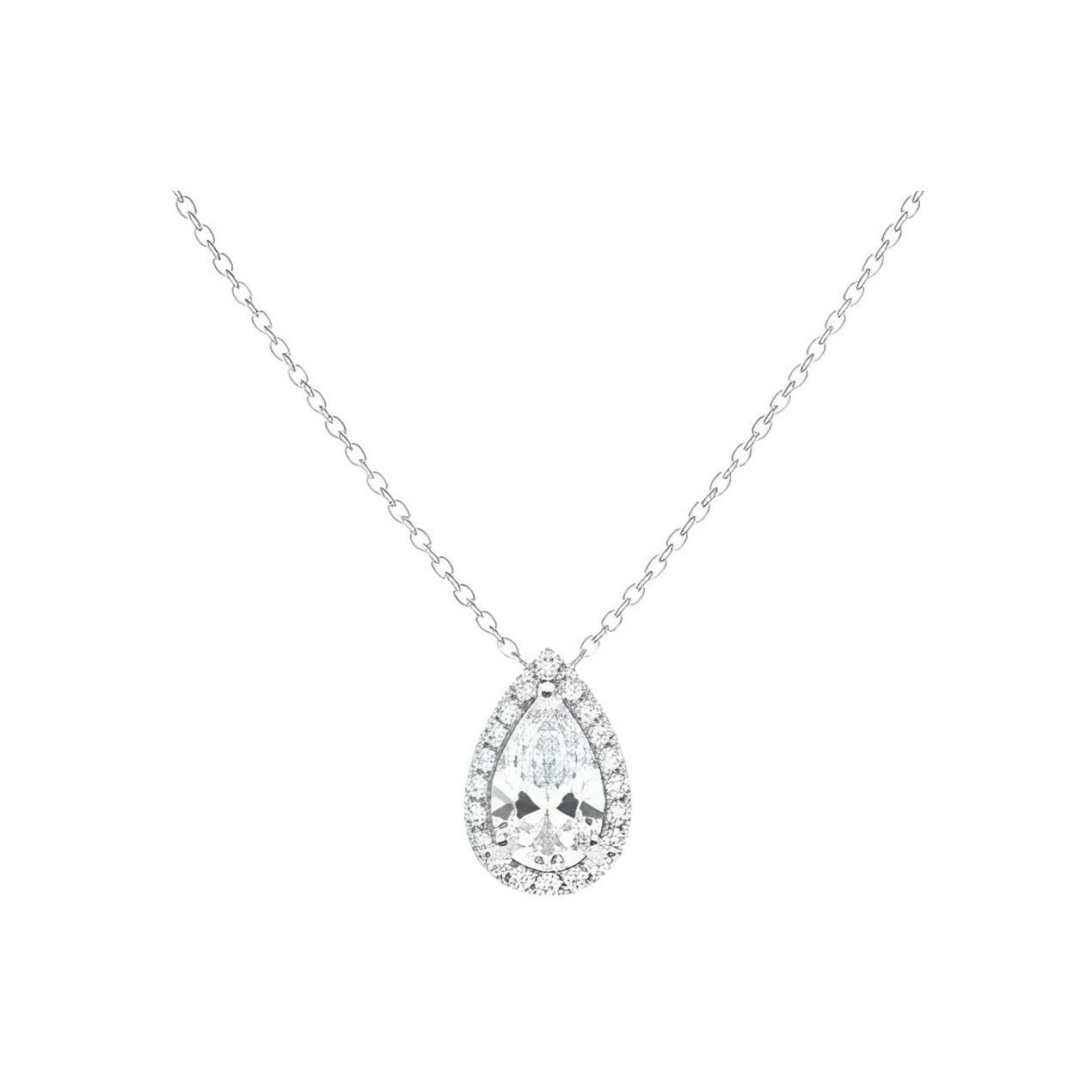 Pendentif poire Gabrielle en or blanc, diamant poire de 1.00ct et 20 diamants ronds brillants de 0.14ct