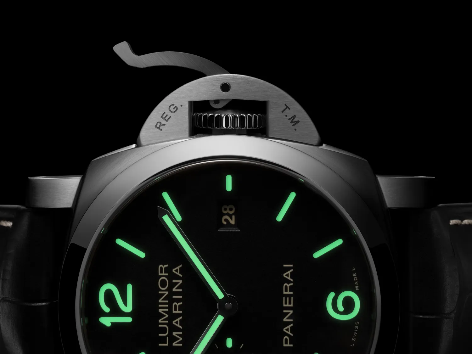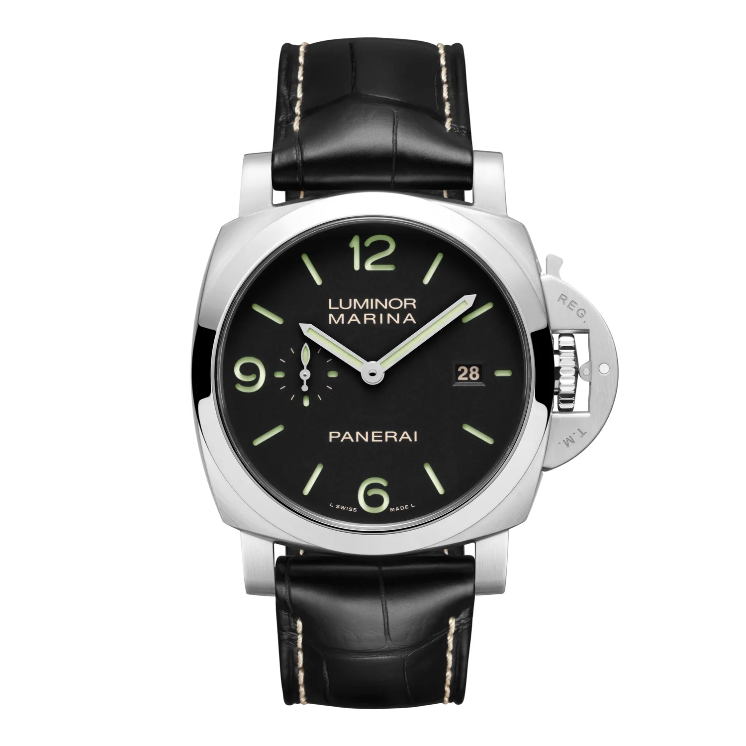 Boîtier en acier 44 mm, mouvement à remontage automatique, bracelet cuir d'alligator
