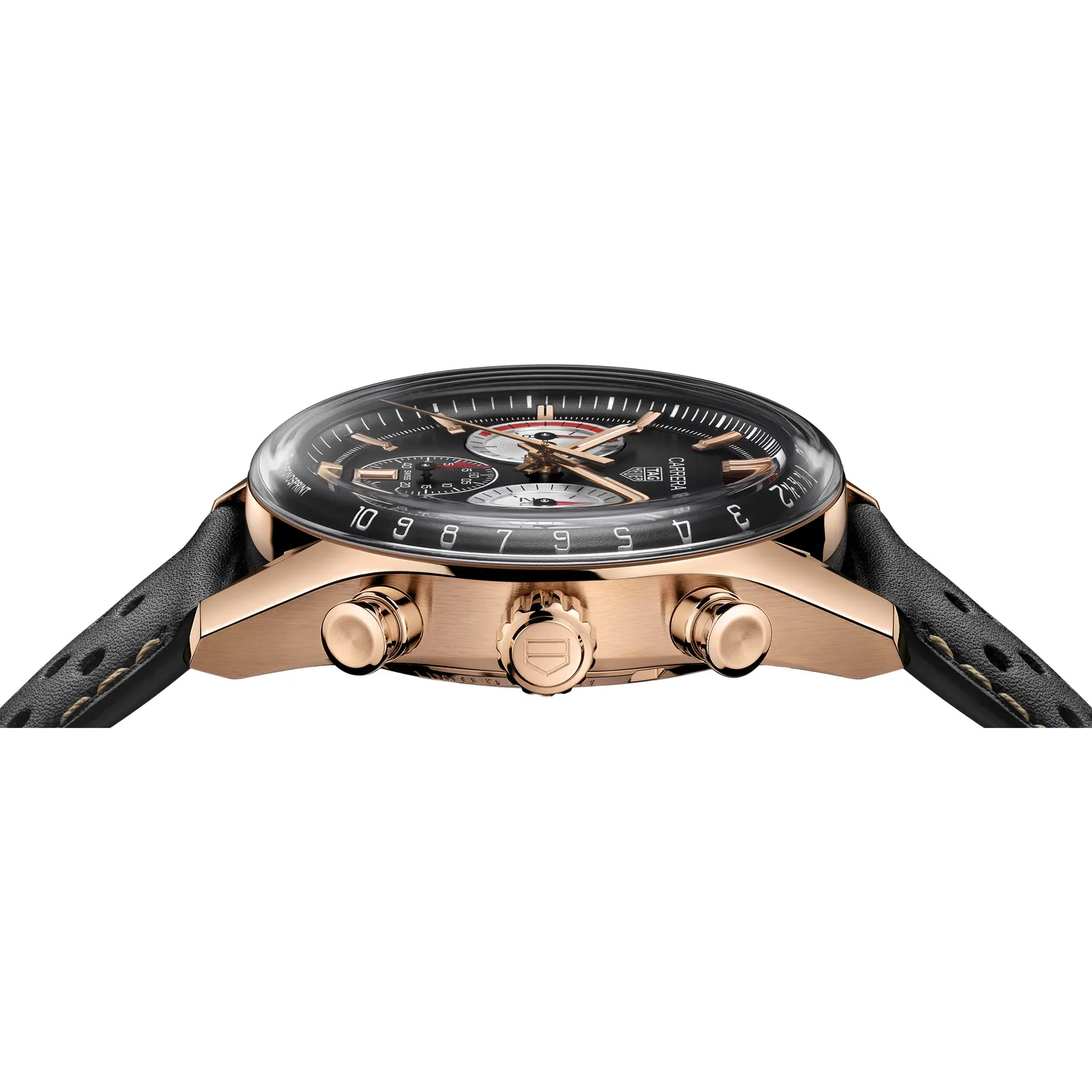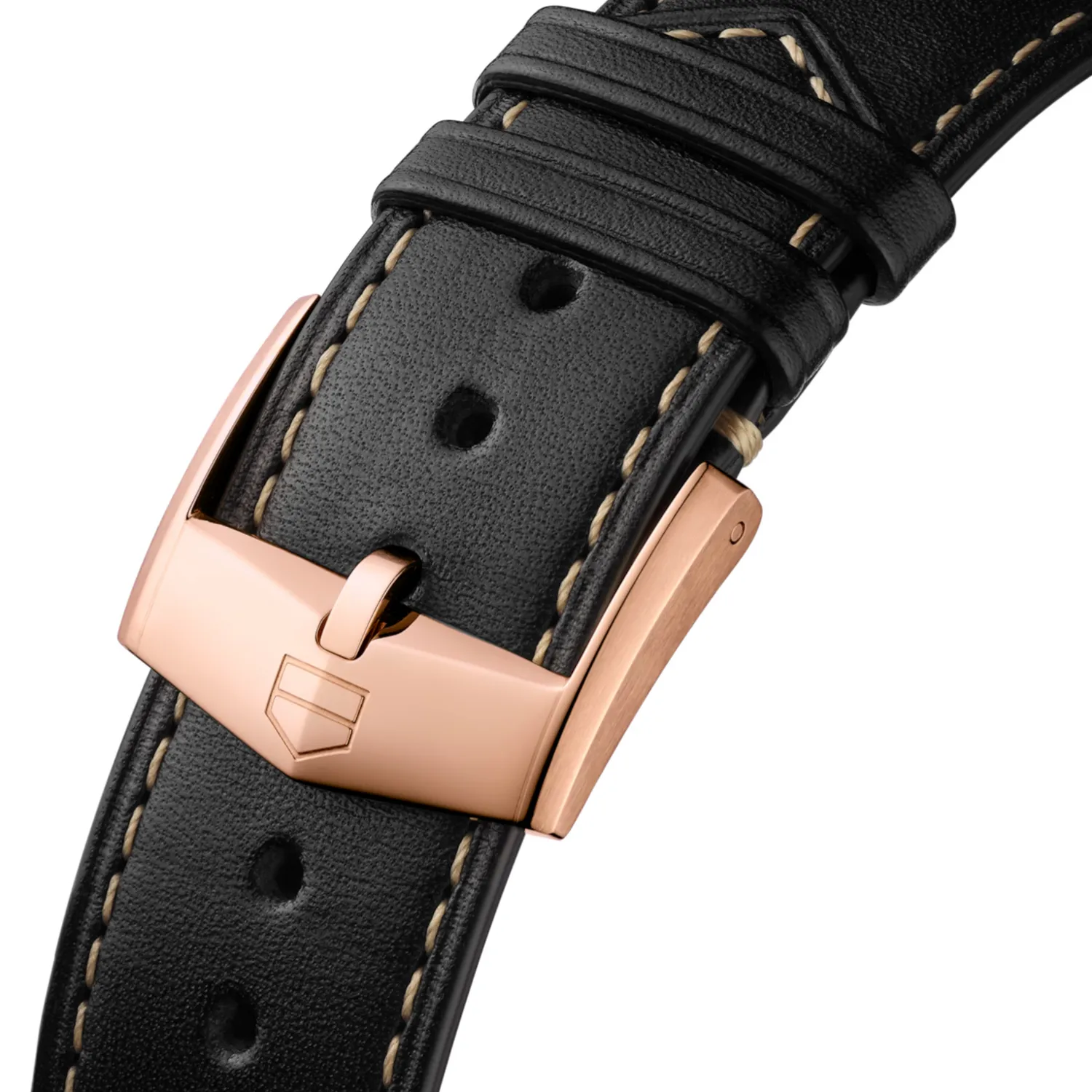 Boîtier en or rose 42 mm, mouvement à remontage automatique, bracelet cuir